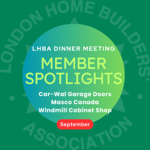 Taking the opportunity to spotlight three of our members during our cocktail hour tonight at LHBA’s September Member Dinner Meeting at Boler Mountain. Thank you CarWal Garage Doors, Masco Canada and Windmill Cabinets for showcasing your work and products!